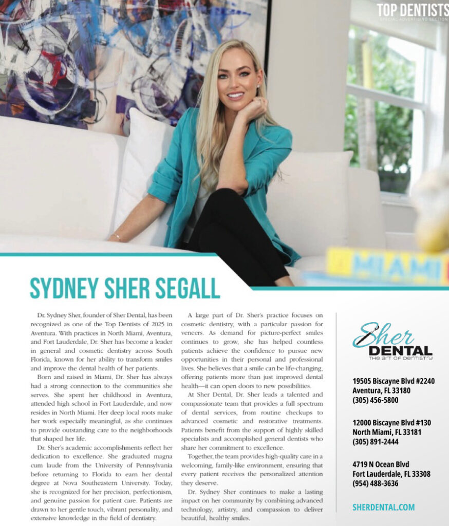 At Sher Dental, we redefine the modern dental experience. With locations in Aventura, North Miami, and Ft. Lauderdale, Dr. Sydney Sher and her team have been setting new standards in cosmetic and advanced dentistry for over a decade.
